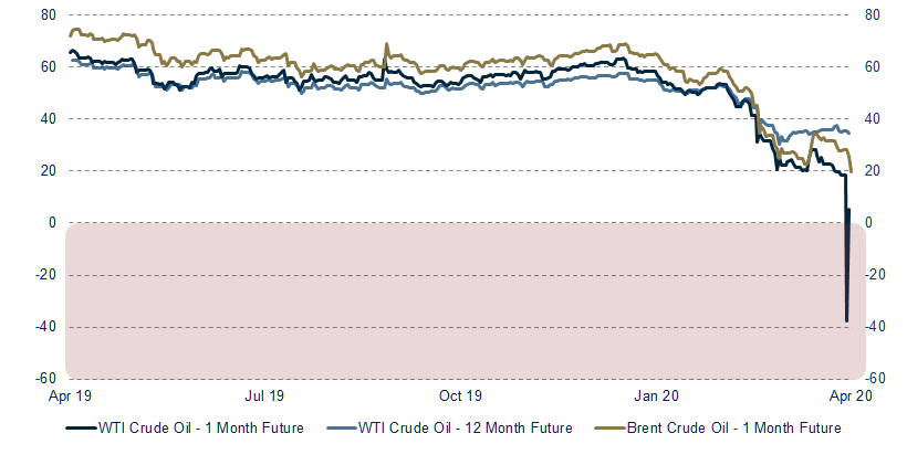 - Despite the vertigo produced by seeing negative prices, these can be explained by a combination of both fundamental and technical factors. Furthermore, it is reassuring to see that both Brent crude prices and long-term future contracts have corrected strongly, but remain around $20